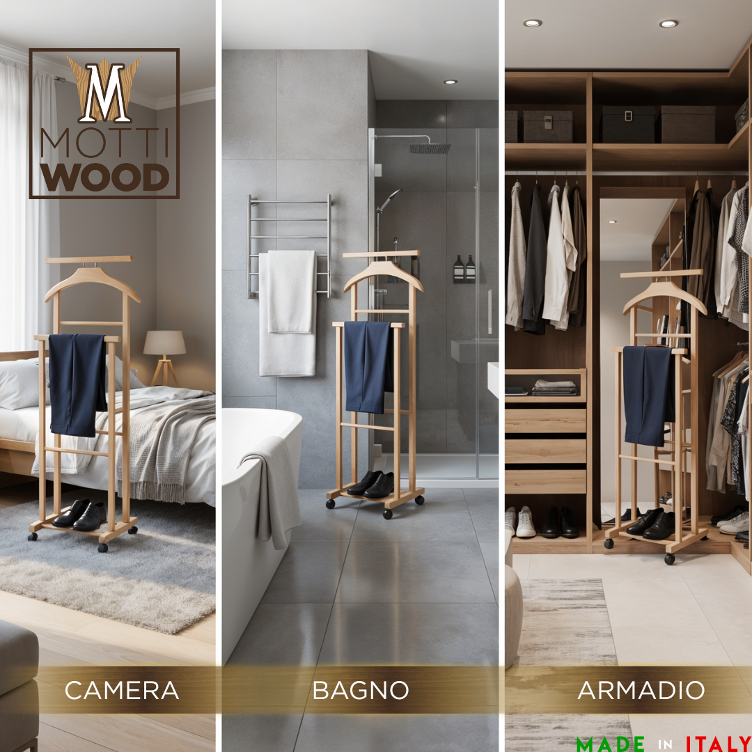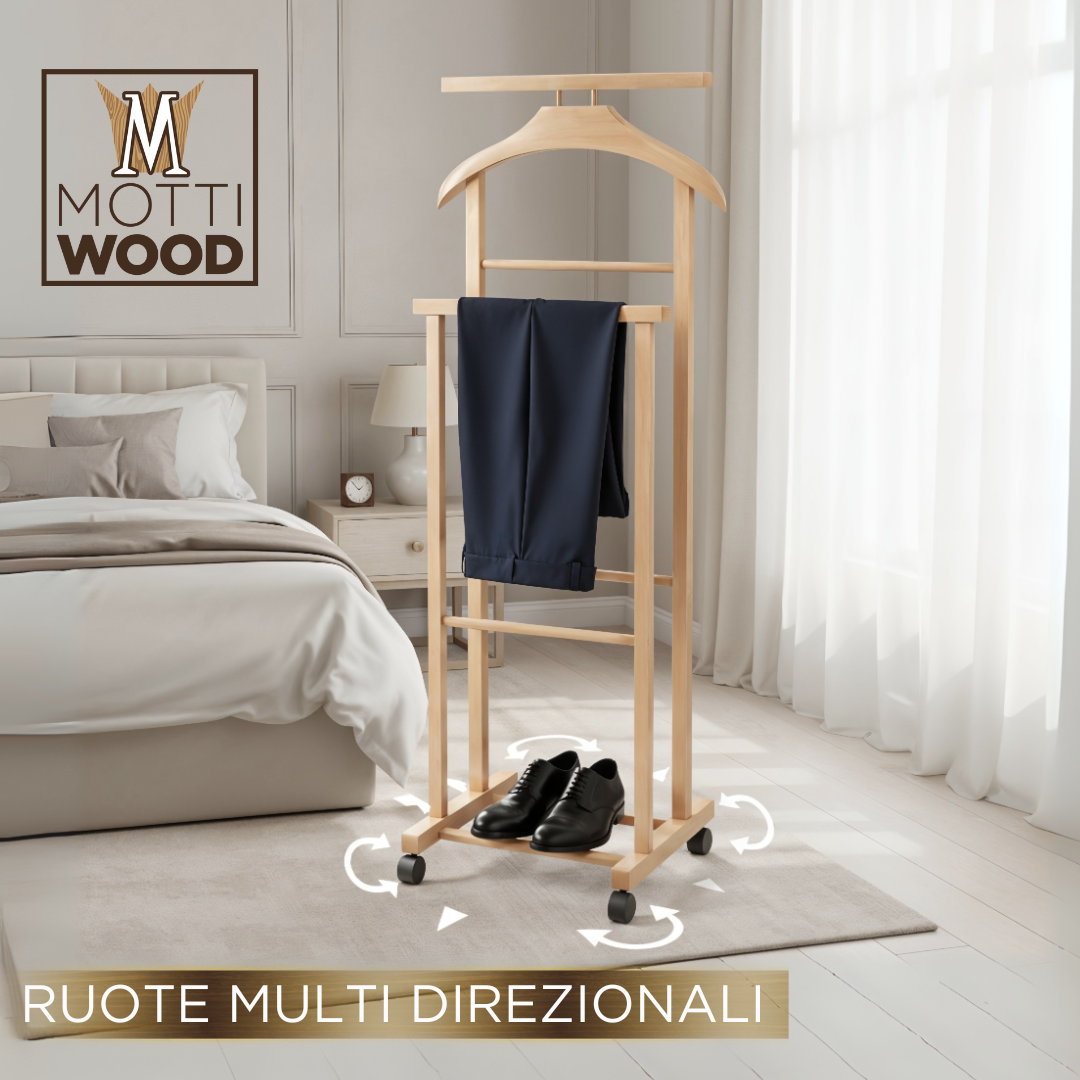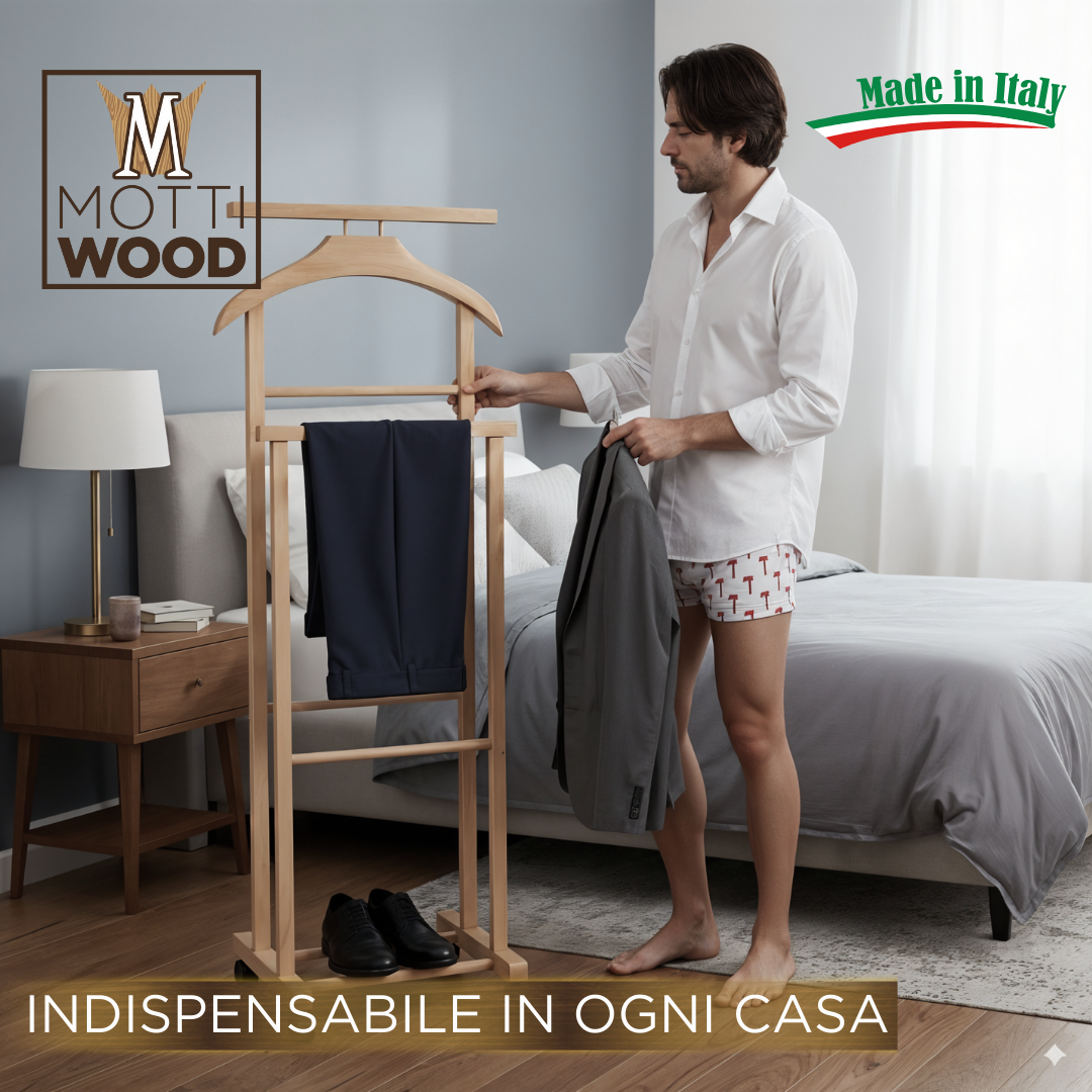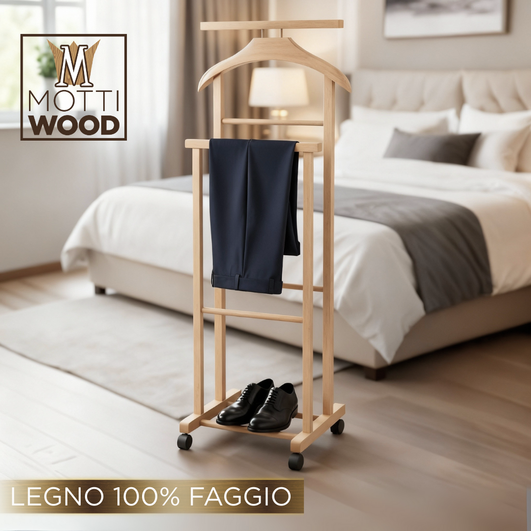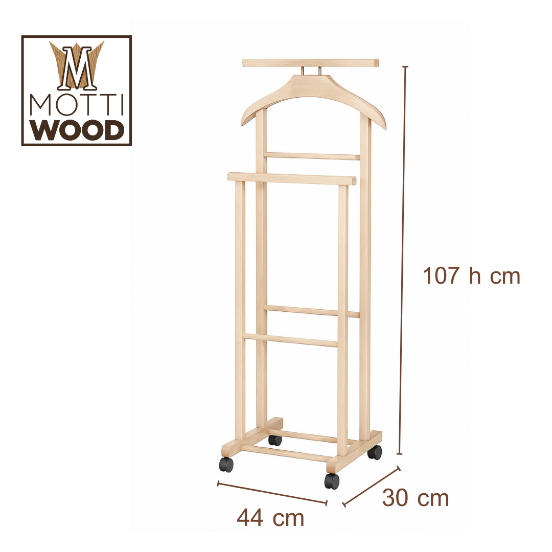 Mantenete l’ordine con l’indossatore appendiabiti in legno di faggio colore naturale. Questo servo muto è un oggetto indispensabile per ogni amante dell’ordine e della bellezza in casa. Scegliete la soluzione perfetta per mantenere il vostro guardaroba in ordine ed elegante, optate per il nostro indossatore appendiabiti in legno di faggio. Il più venduto in Italie ed Europa.